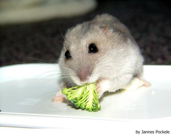 Recebemos no nosso hospital muitos casos de animais pets, principalmente exóticos e silvestres, recebendo alimentação desbalanceada e insuficiente para o manter nosso amiguinho saudável. No caso dos hamsters é comum vermos os tutores fornecendo apenas misturas de sementes cheias de semente de girassol e amendoim, muito apreciada pelos pequenos, porém com um baixo valor nutricional e com excesso de gorduras. O resultado é um animalzinho gordinho, porém em deficiência nutricional. A alimentação ideal para um hamster se baseia em principalmente uma ração peletizada de boa qualidade. A mistura de semente, por sua vez, deve conter vário tipos de grãos como trigo, soja, aveia, arroz com casca, milho, linhaça e gergelim. Sendo que o girassol e o amendoim podem ser fornecidos apenas esporadicamente como petisco. Além destes dois itens podemos ainda fornecer nozes, castanhas e pinhão em pequena quantidade. As frutas e legumes são muito apreciadas, podem ser oferecidos pelo menos um tipo diariamente. As verduras verde escuras devem ser fornecidas também em pequena quantidade (evitar repolho, alface e acelga). Balanceando desta forma teremos um hamster muito feliz e saudável!