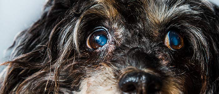 A degeneração corneana mais comum é a degeneração lipídica, causada por alterações patológicas no metabolismo das células da córnea. É caracterizada pela deposição de lipídios e cálcio ou uma combinação destes, levando à perda da transparência da camada mais superficial do olho. Os lipídios chegam até a córnea através dos vasos sanguíneos na borda do olho e depositam-se como um efeito de hiperlipoproteinemia em animais com hipotireoidismo, pancreatite, diabetes mellitus, hiperadrenocoticismo ou elevações lipídicas após a alimentação. A deposição de cálcio na córnea é encontrada com menor frequência que a deposição lipídica e ocorre como consequência de condições que induzem ao aumento do cálcio no sangue, como hipofosfatemia, uremia, hipervitaminose D e hiperadrenocorticismo (Síndrome de Cushing), ou em associação com inflamação corneana crônica, como ceratoconjuntivite seca, uveíte, glaucoma ou atrofia do globo ocular. As mudanças visíveis nas degenerações corneanas são progressivas, de um ou ambos os olhos, simétricas ou não, com bordas bem delimitadas. A presença de vasos sanguíneos e pigmentação pode preceder ou acompanhar a degeneração. Os lipídios e o cálcio são vistos como opacidades que variam de coloração esbranquiçada, acinzentada, prateada e amarelada. O ideal é sempre fazer um acompanhamento da saúde ocular do seu cão ou gato com um oftalmologista veterinário.