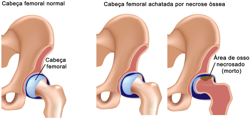 A necrose asséptica da cabeça do fêmur é uma alteração asséptica não inflamatória da cabeça e colo femorais, mais comum em cães de pequeno porte. Ocorre em animais jovens, antes do fechamento da linha de crescimento. É mais comum em raças pequenas como Yorkshire Terrier, Poodle toy, Maltes, Lhasa Apso entre outros.