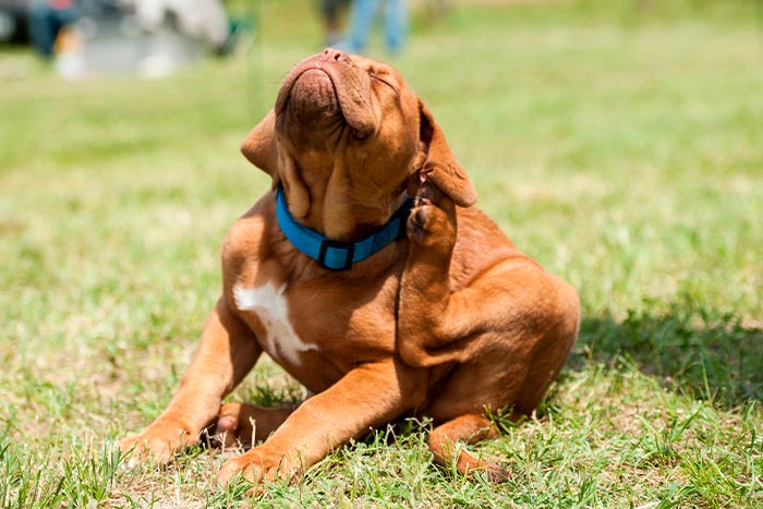 Pulga: ectoparasita mais comum em cachorros, é contraída a partir do ambiente ou do contato com outros animais com infestação. Além da coceira, também pode causar outros problemas, como a dermatite alérgica por picada de pulga;
